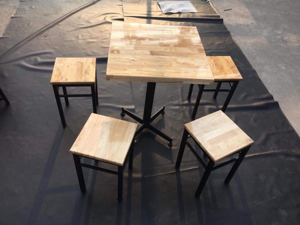 Bàn ghế cafe vuông chân sắt mặt gỗ NO:0012
