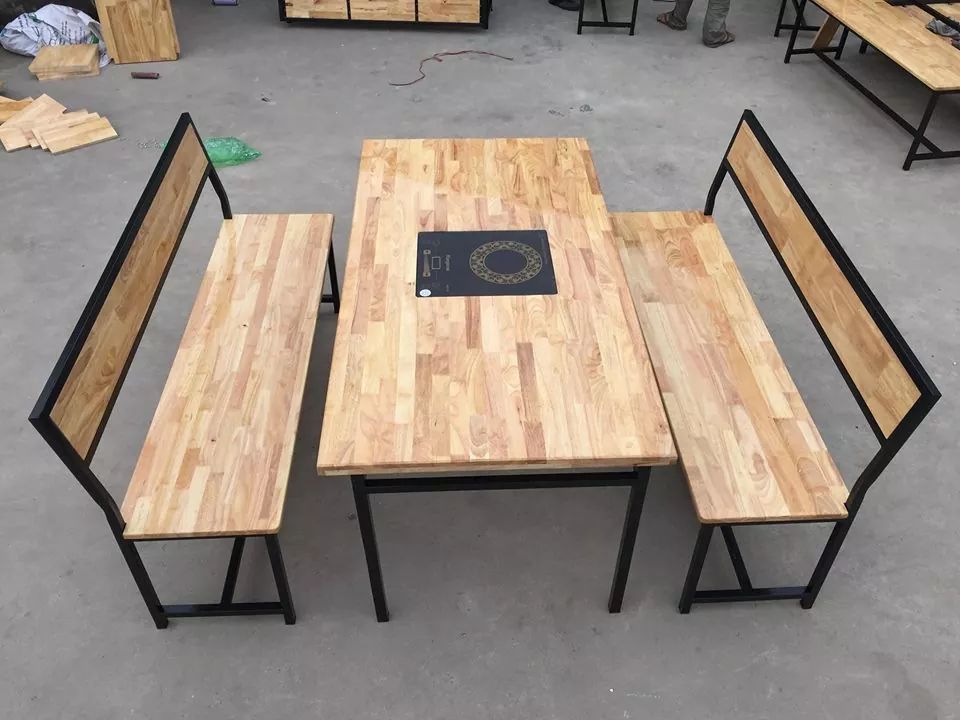 Bàn ghế lẩu nướng chân sắt mặt gỗ N0:0011