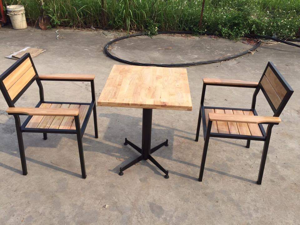 Bàn ghế trà sữa mặt gỗ chân sắt NO:0010